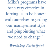 Michael's work focuses on "whole brain learning" -- engaging and integrating both the intuitive, imaginative right brain and the logical, rational left brain to achieve optimal results. By incorporating the wisdom of artists, businesspeople, researchers, and the participants themselves, he delivers highly engaging learning experiences that foster collaboration, creative problem solving, and personal accountability.